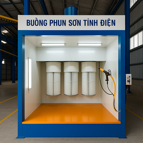 Buồng phun sơn tĩnh điện là thiết bị không thể thiếu trong các dây chuyền sơn công nghiệp hiện đại. Với chức năng tạo môi trường kín, hạn chế bụi bẩn và thu hồi sơn dư, buồng phun sơn giúp tối ưu hóa quá trình sơn phủ, nâng cao chất lượng sản phẩm, tiết kiệm nguyên liệu và bảo vệ môi trường.